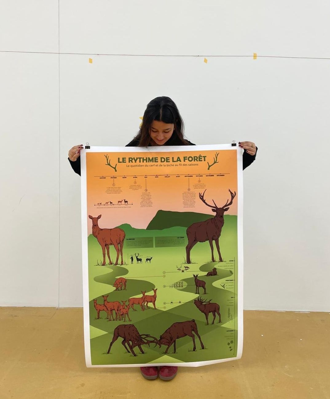 Vivant en harde séparée tout du long de l'année, excepté lors de la saison du rut, cette affiche donne quelques éléments clés du mode de vie du cerf et de la biche.